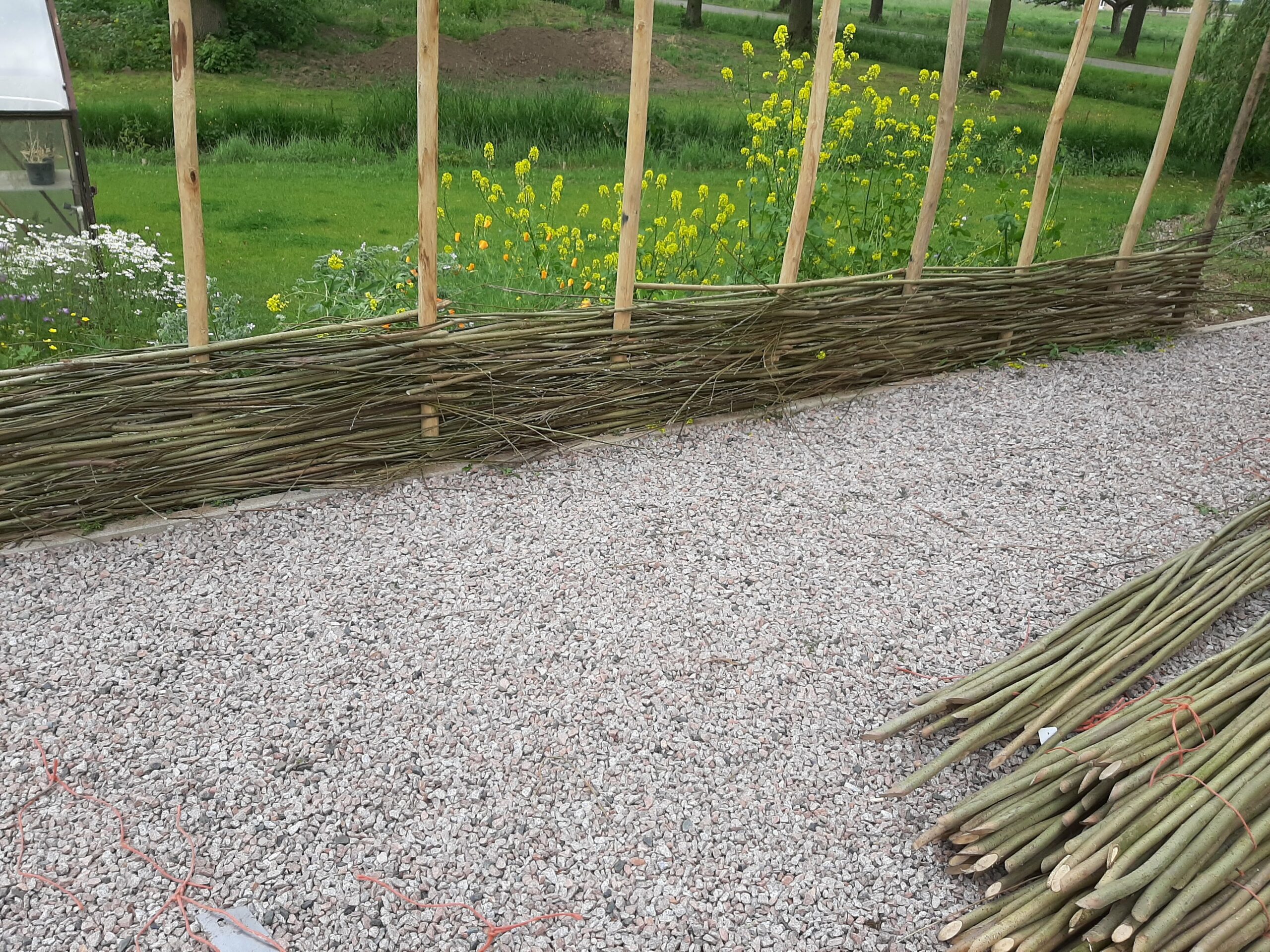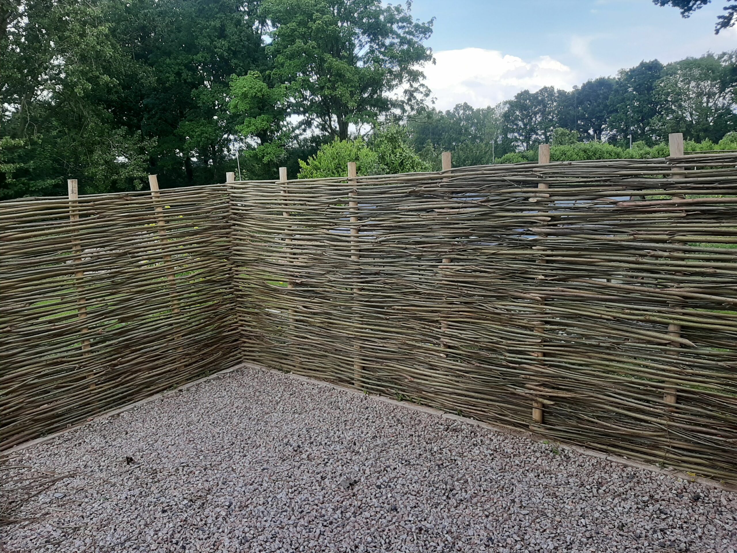 Een schutting gemaakt van wilgen tenen.